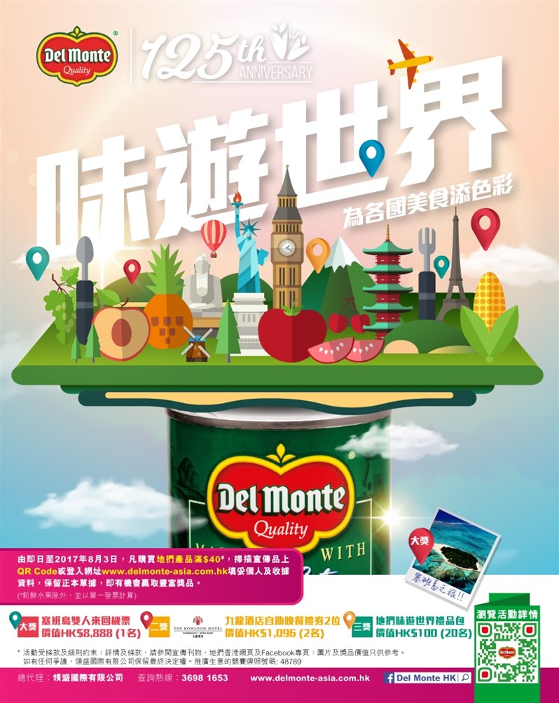 For promotion & prize details & terms, please refer to leaflet, Del Monte HK website & Facebook fans page. Prize picture and Value are reference only.